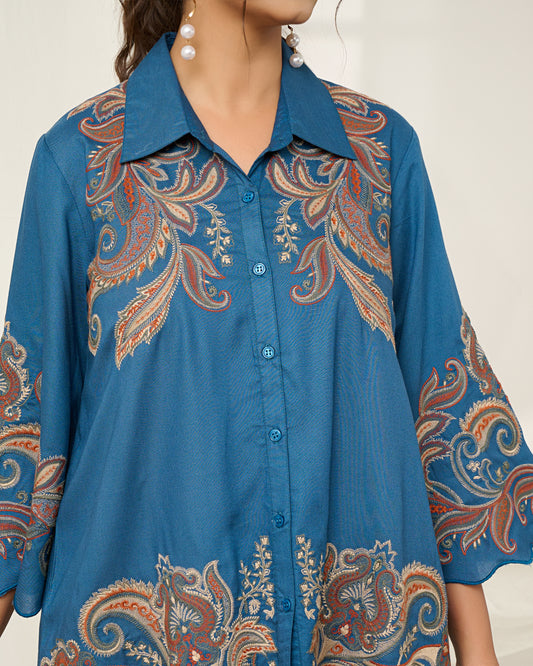 Daisy Blue Luxe Handcrafted Embroidered Co-Ord Set
