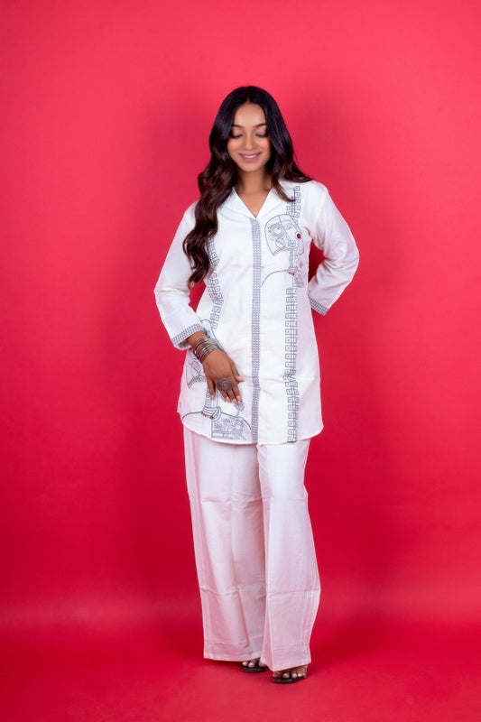 🤍 Elegant White Embroidered Co-ord Set with Thread & Moti Work