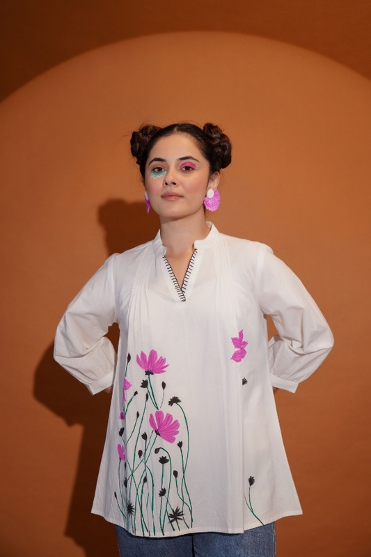🌸 Elegant White Floral Top for Girls & Women | Hand Painted & Hand Work 🎨✨
