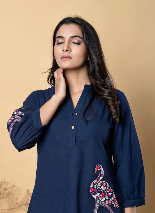 Women's Royal Blue Floral Animal Embroidered Top and Pant Co-ord Set