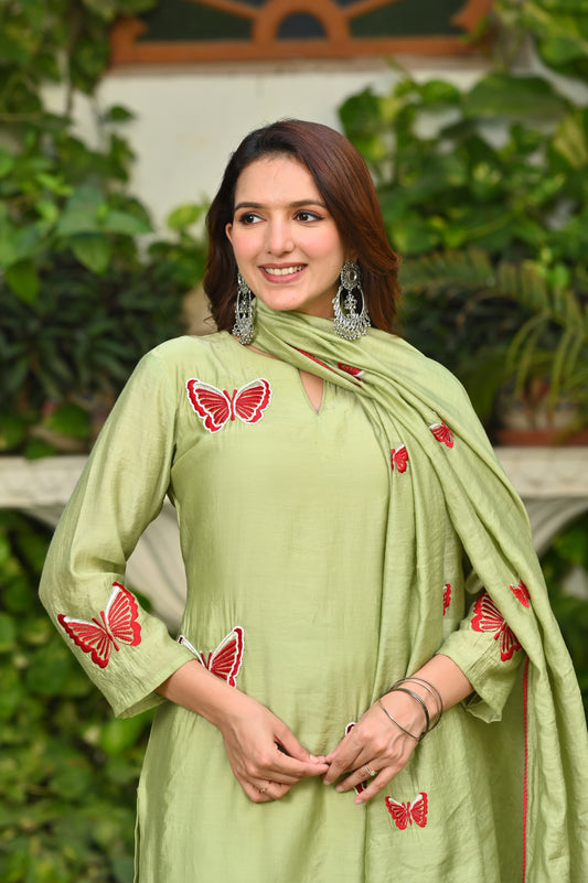 🦋 Mint Green Butterfly Embroidered Co-ord Set