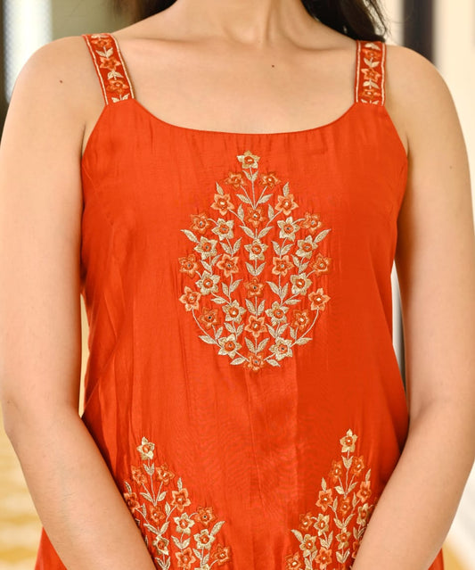 Orange Anarkali Set with Embroidered Detailing & Palazzos