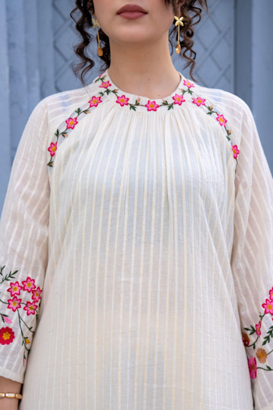 Women’s Cream Pure Cotton Embroidered Co-ord Set – Stylish Ethnic and Casual Wear Outfit