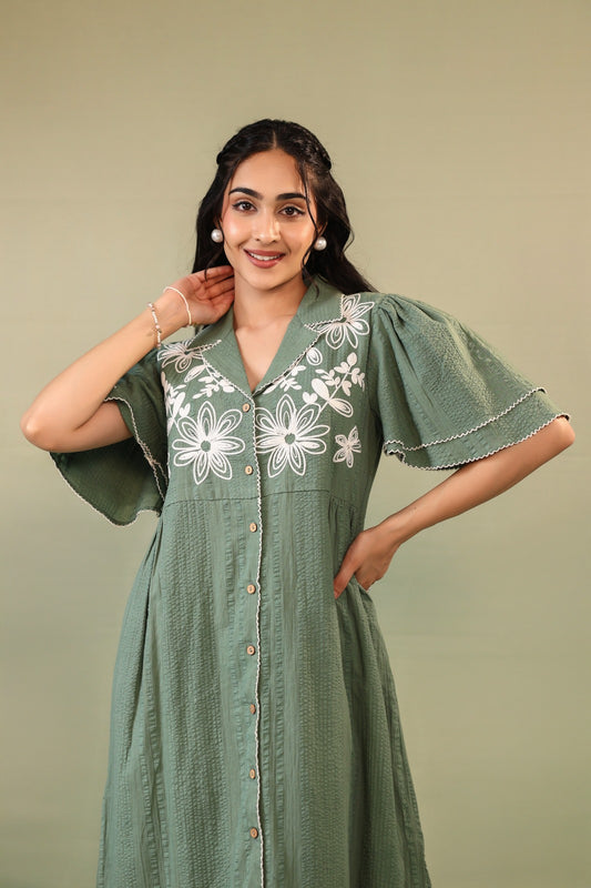 Women’s Cotton Green Floral Embroidered Co-ord Set – Stylish and Comfortable Outfit for Casual and Ethnic Wear