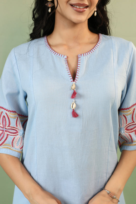 Sahara Grace Blue Embroidered Kurta and Trouser Set