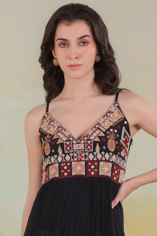 Bindhu Black Flowy Embroidered Sleeveless Dress
