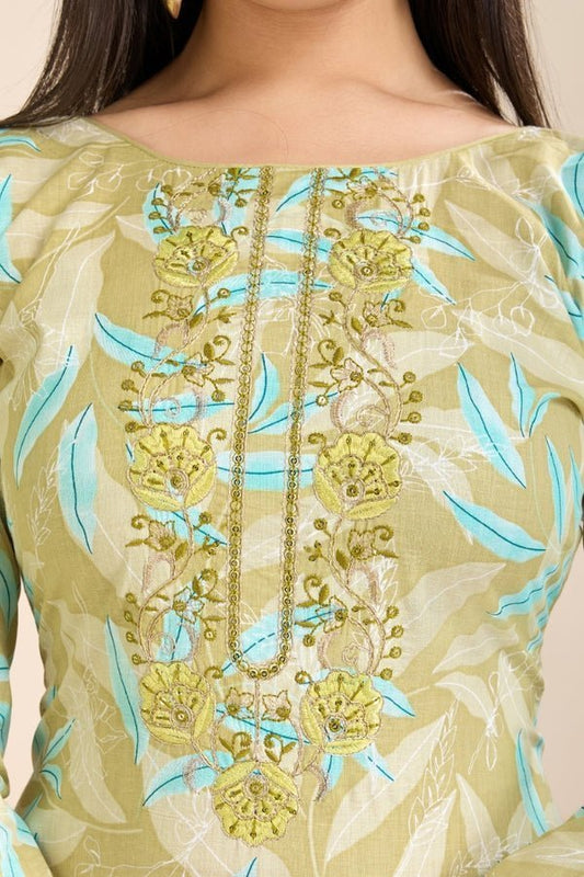 Rolex Green Neck Embroidered and Printed Salwar Suit Set with Dupatta
