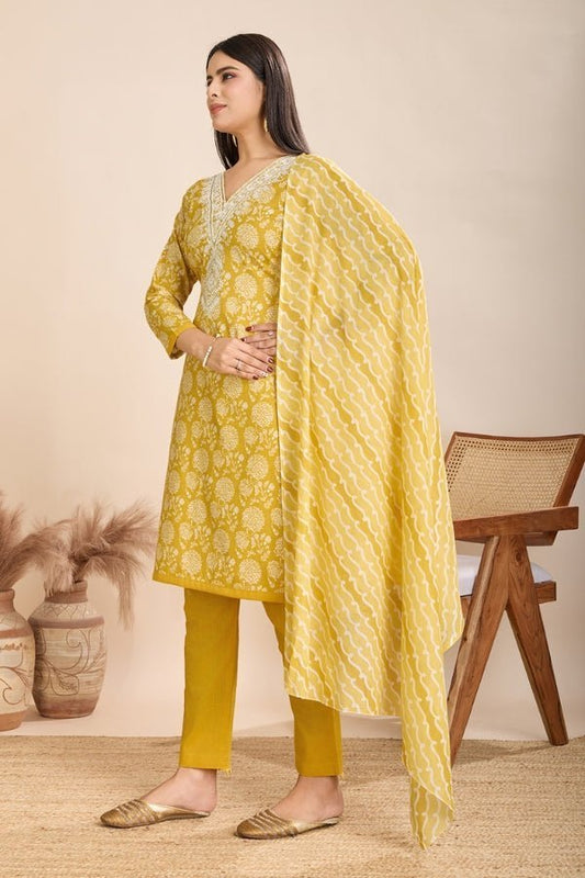 Rolex Yellow Printed Salwar Suit Set with Dupatta