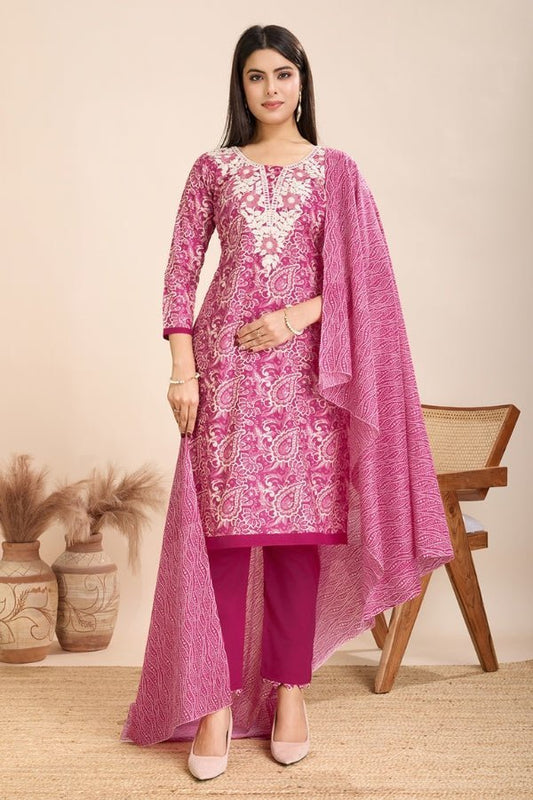 Rolex Pink Embroidered Ready To Wear Salwar Suit Set with Dupatta
