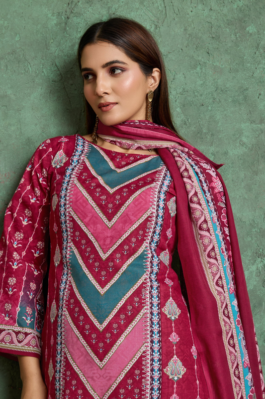 Noor Jahan Maroon Unstitched Salwar Suit Material