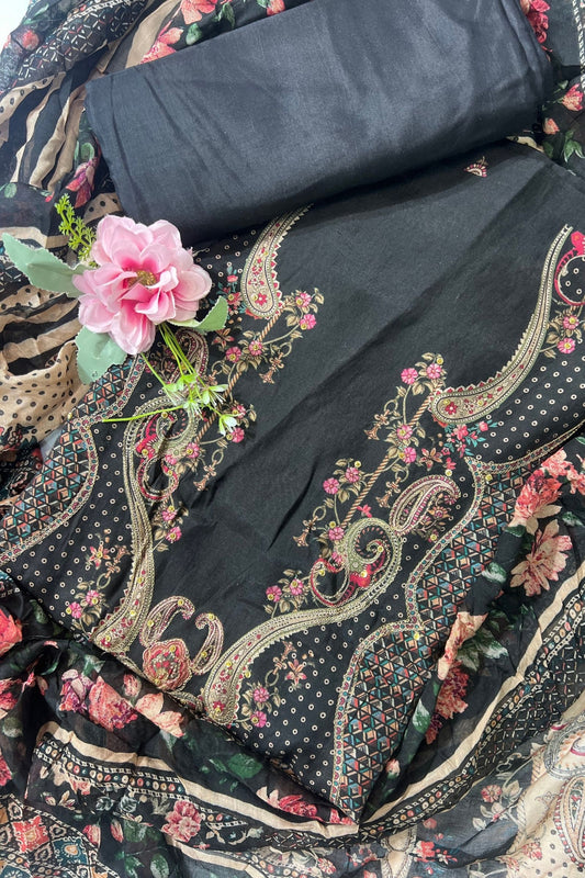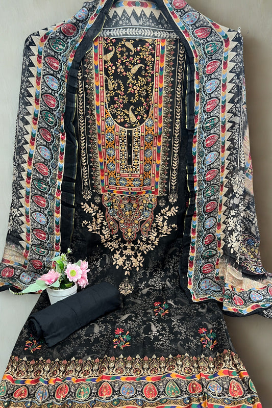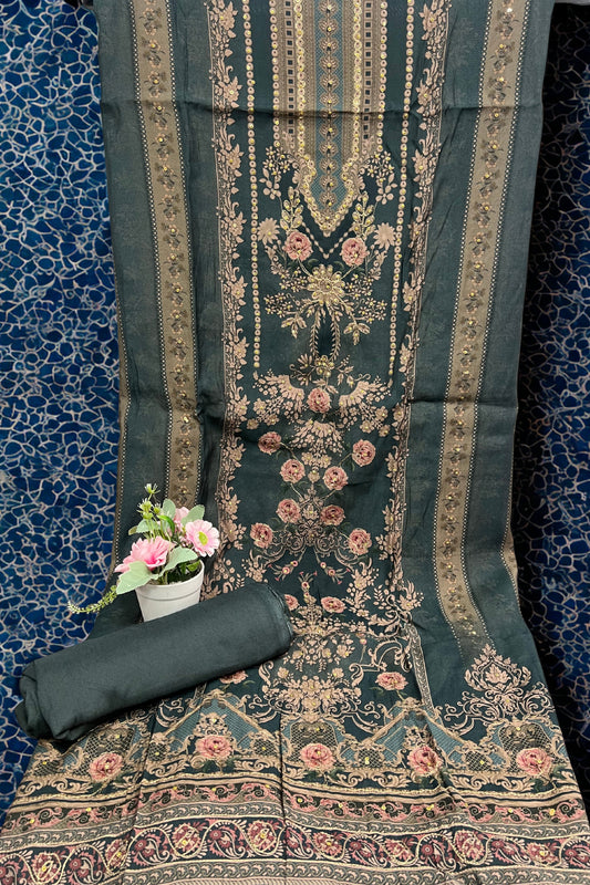 Embroidered and Printed Work Unstitched Salwar Suit Material