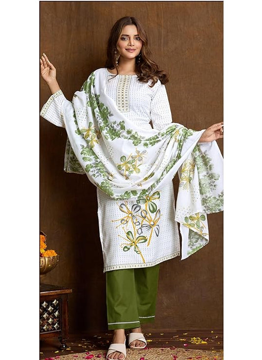 Noor Jahan White Green Unstitched Salwar Suit Material