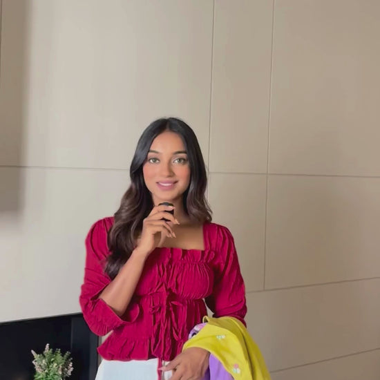 Saiyami Yellow Embroidered Kurti Palazzo Set