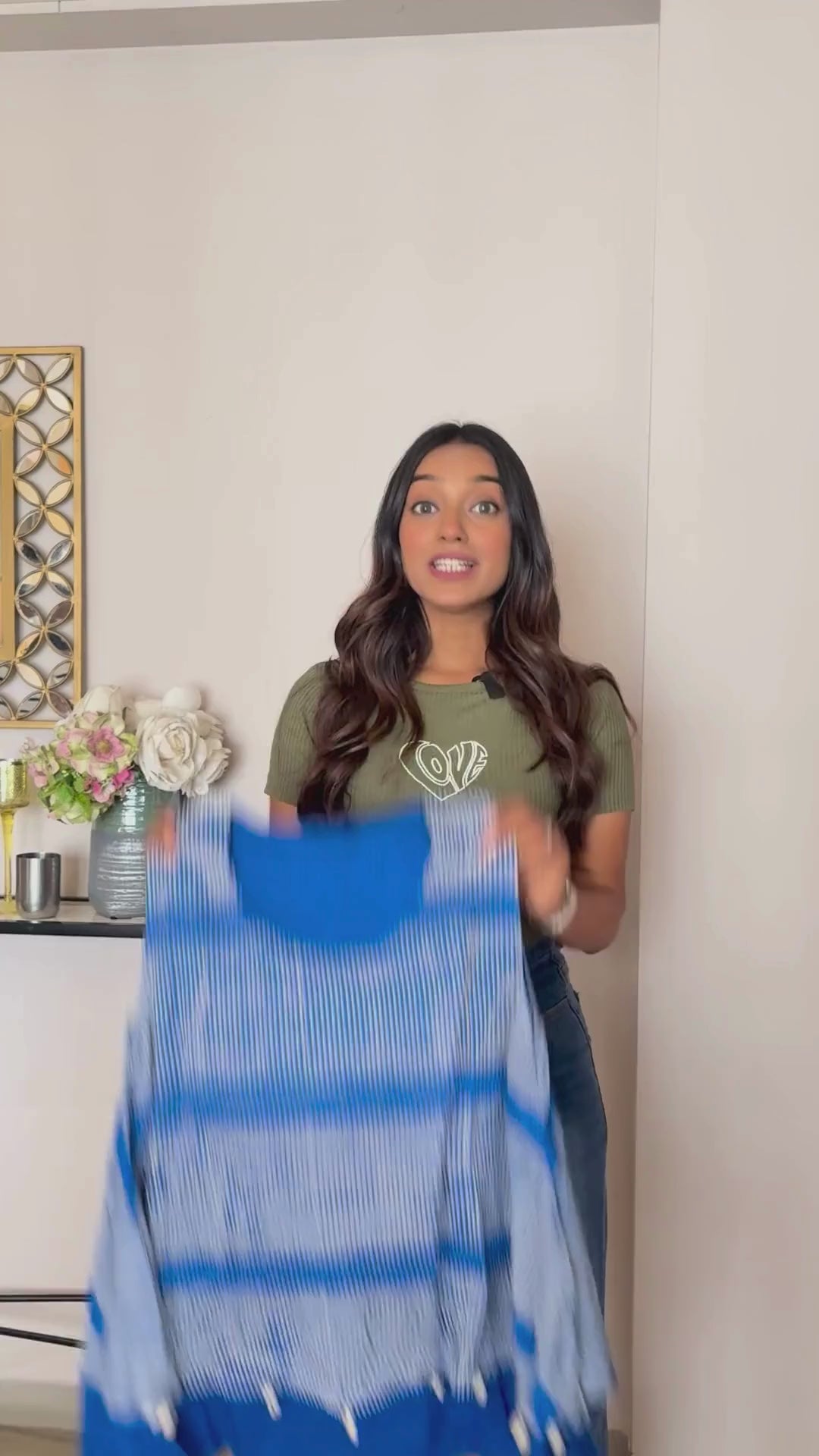 Refresh your wardrobe with this trendy and comfortable Indo-Fusion Co-Ord Set – featuring a blue striped layered sleeveless top adorned with delicate kodi shell work, paired with stylish off-white cargo-style pants. The layered flare design of the top brings a modern twist, while the functional details on the bottoms add an urban edge to your ethnic wear. This outfit is perfect for casual outings, festive gatherings, or vacation looks — where comfort meets