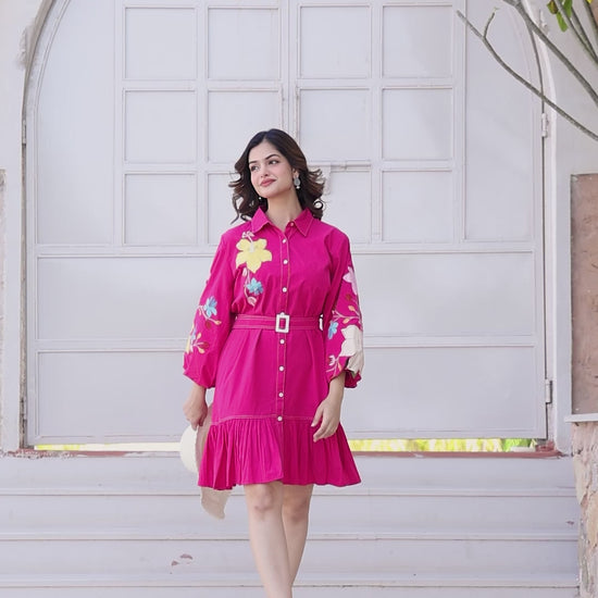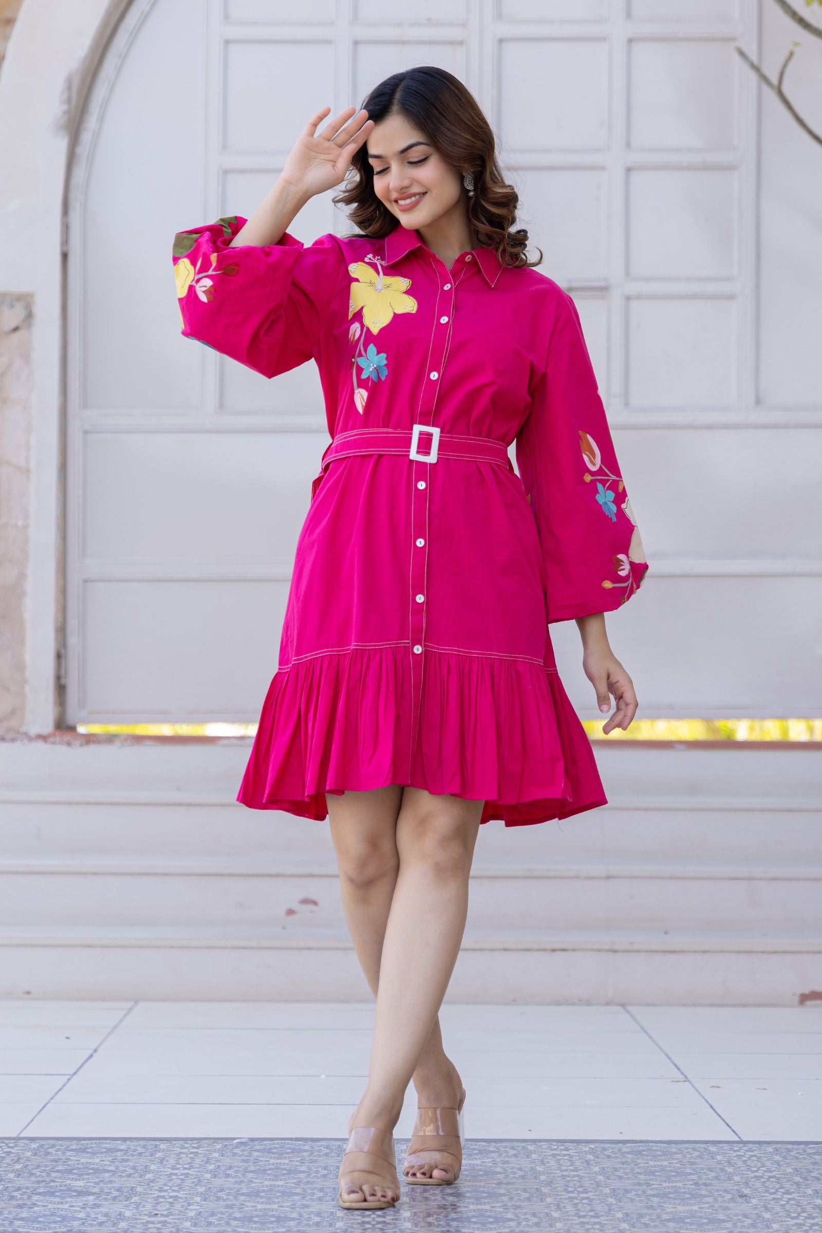 Women’s Pink Floral Cotton Western Midi Dress – Casual & Party Wear Outfit