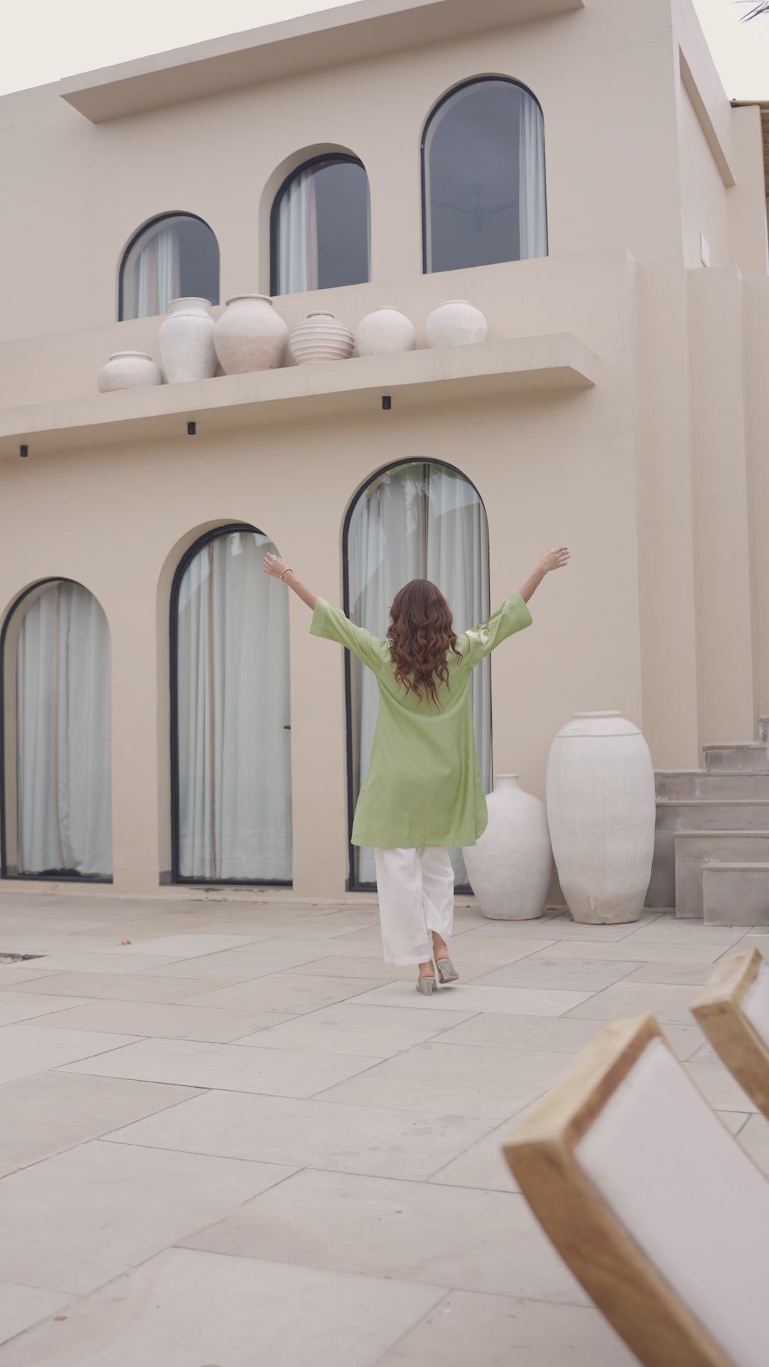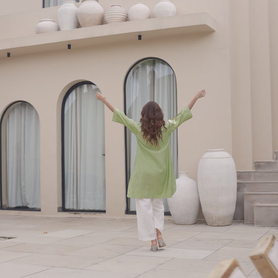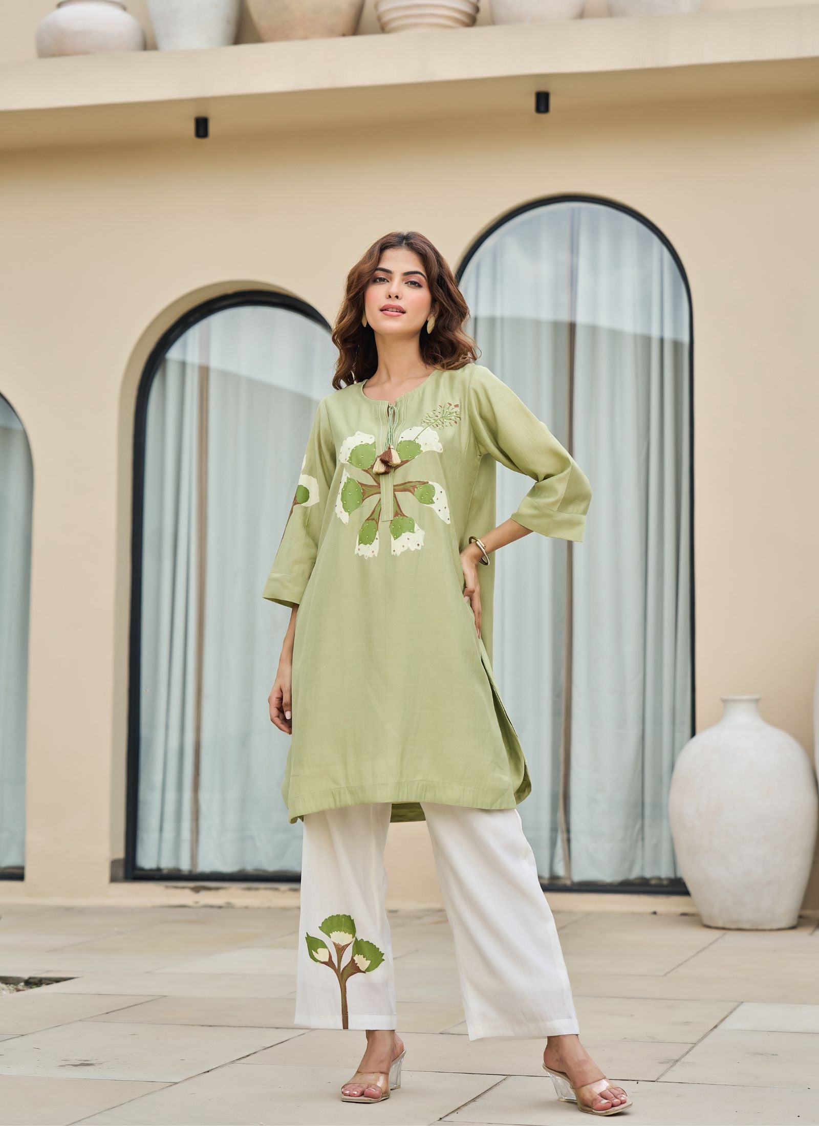 Green Floral Tunic with Elegant White Pants | ideal for warm weather |