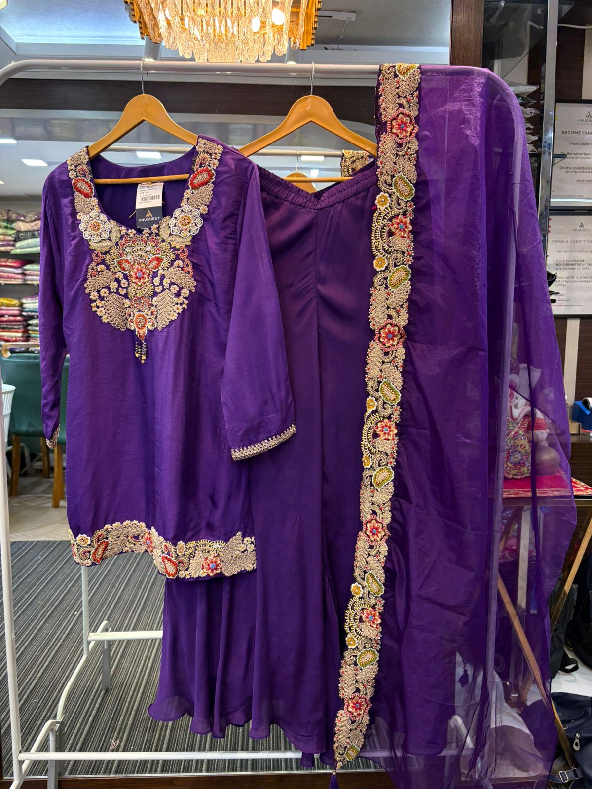 Indira Purple Floral Kurta and Palazzo with Dupatta Set