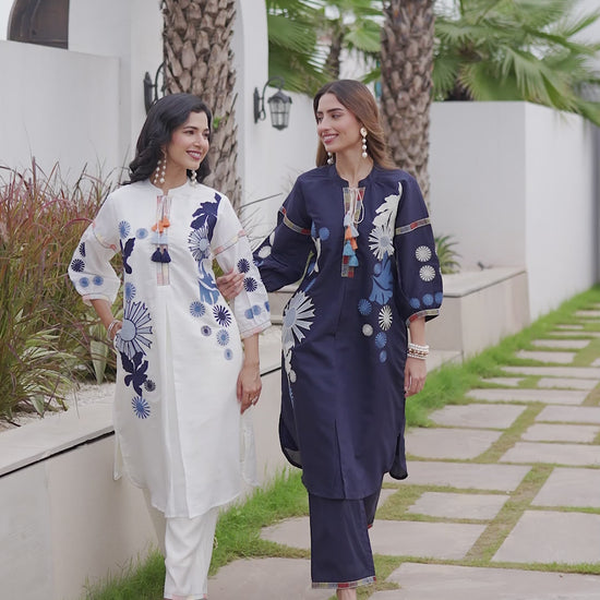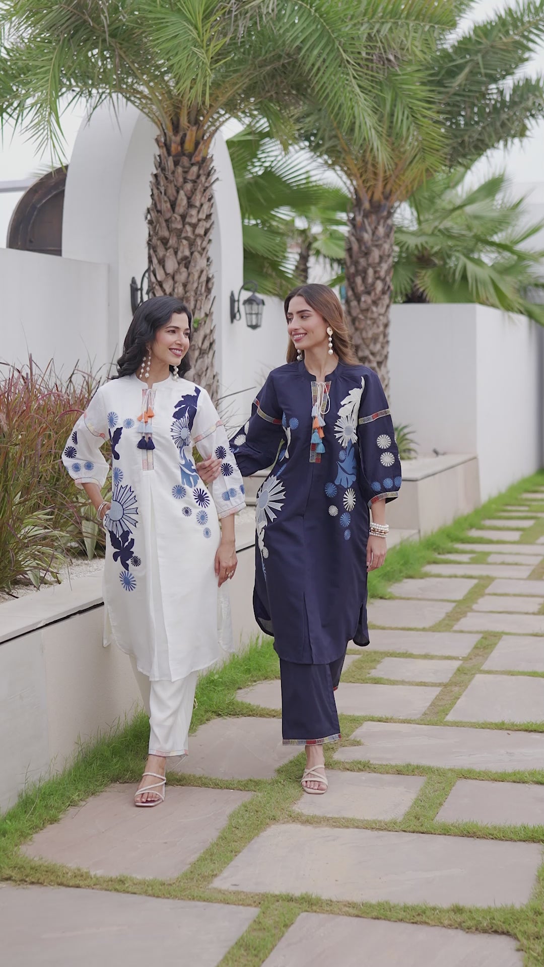 This beautifully crafted white kurta set, designed to blend modern charm with traditional grace.