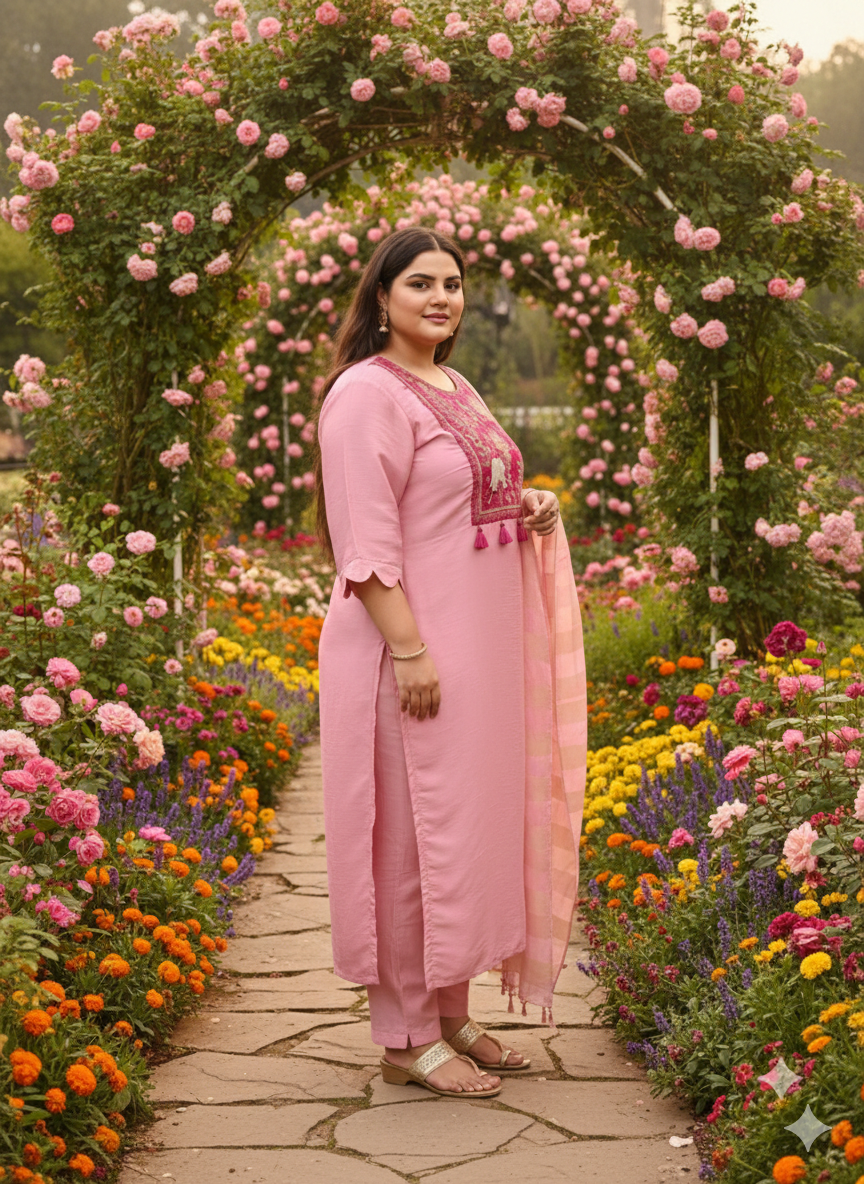 Elegant women’s kurta set with matching pants and dupatta