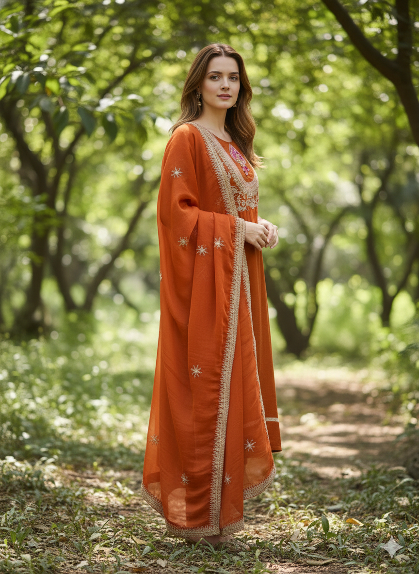Rukmani Rust Suit Set With Heavy Neck Hand-Work