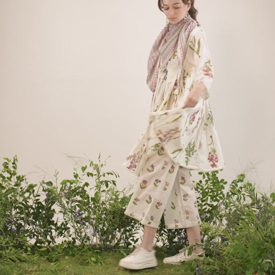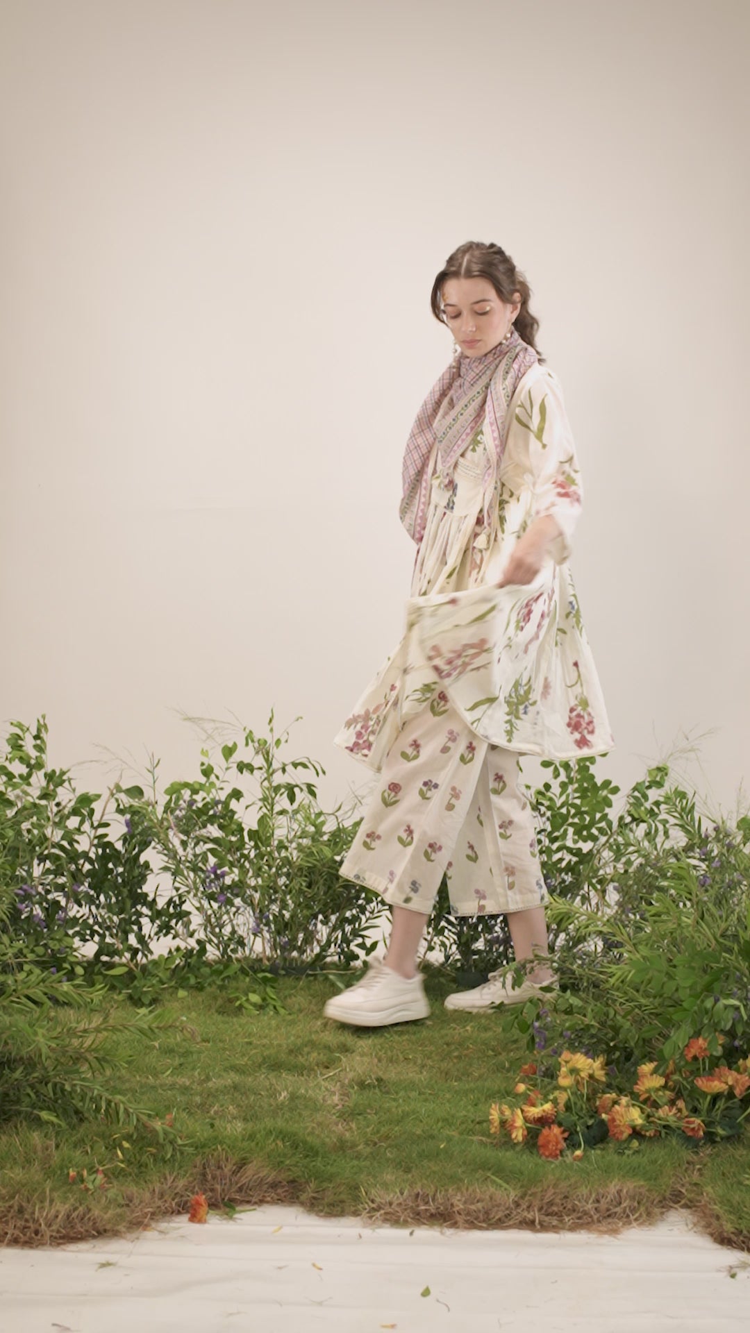 Embrace boho-chic elegance with this dreamy tiered dress set that feels like a walk through a blooming garden. Crafted in a soft ivory hue, this flowy ensemble features a charming kurta with subtle floral prints, flared sleeves, and a relaxed fit. The matching tiered skirt adds graceful movement and volume, while the printed scarf-style dupatta ties the whole look together with rustic charm. Ideal for garden brunches, festive mornings, or a laid-back celebration look. ๐ผ๐