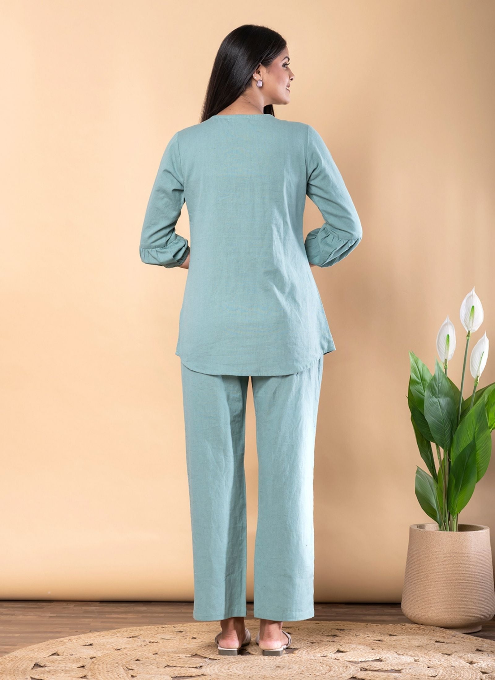 Made from 100% pure cotton, this co-ord set is soft, breathable, and gentle on the skin. Cotton fabric keeps you cool and fresh all day long, making it ideal for hot summers as well as mild weather. It offers lightweight comfort and easy maintenance, ensuring long-lasting durability.