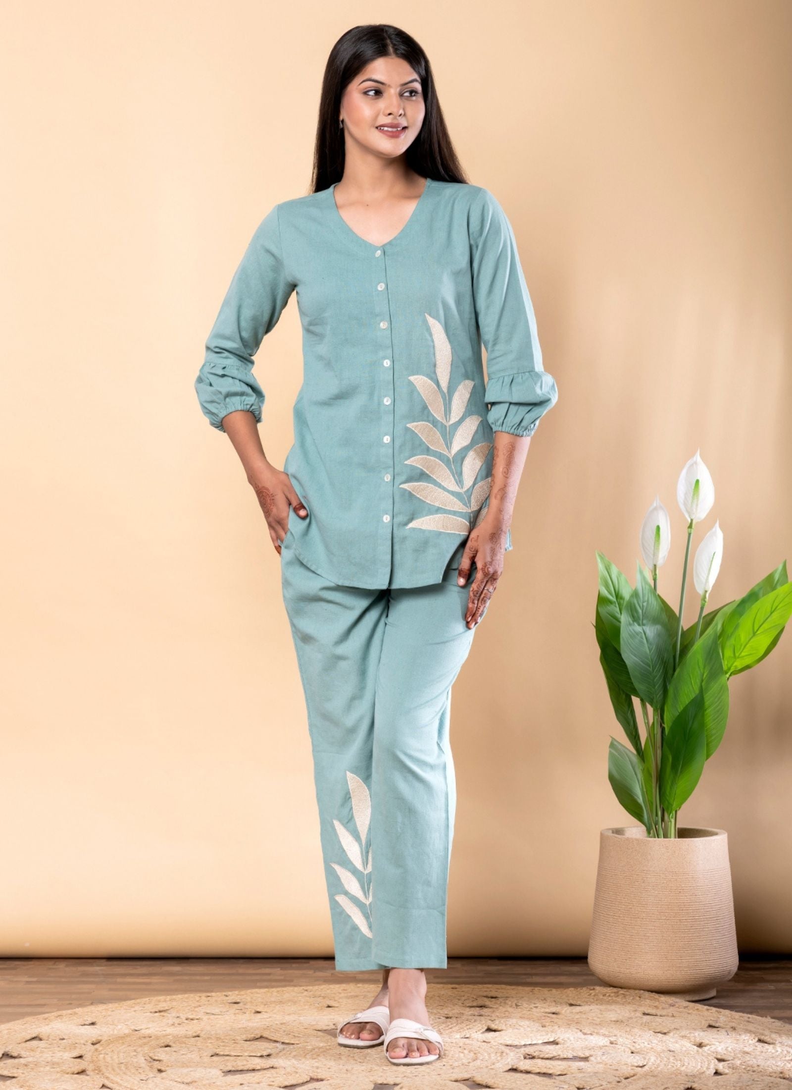 Bring elegance and comfort together with this Women's Turquoise Blue Pure Cotton Floral Thread Embroidered Co-ord Set. Perfect for everyday wear, casual outings, office meetings, and festive occasions, this outfit is designed for the modern woman who values style with ease.